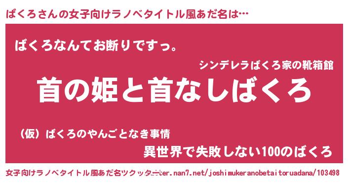| 意味不明あだ名 | 『自称ばくろ』『永久保存ばくろ』 |
