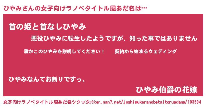 | 胡散臭い通販商品みたいなあだ名 | 『億万長者になれる水晶球…その名も「ひやみ」』 |