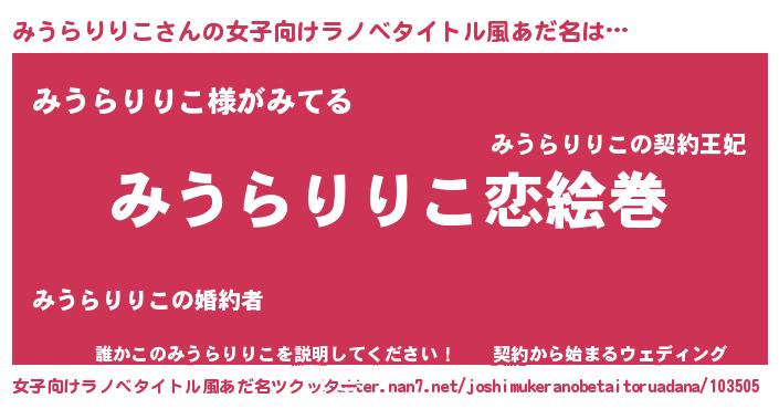 | 男性向けラノベタイトル風あだ名 | 『ノーゲーム・ノーミウラリリコ』 |