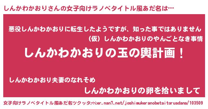 | 男性向けラノベタイトル風あだ名 | 『転生したらしんかわかおりだった件』 |