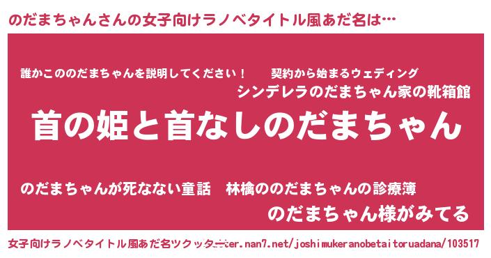 | 男性向けラノベタイトル風あだ名 | 『はたらくのだまちゃんさま!』 |