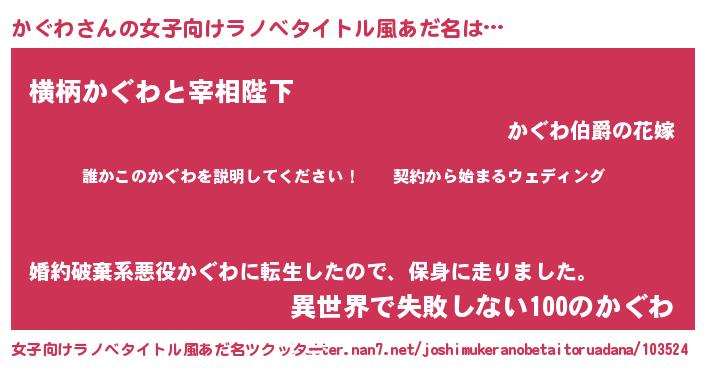 | 胡散臭い通販商品みたいなあだ名 | 『億万長者になれる霊験あらたかなお札…その名も「かぐわ」』 |