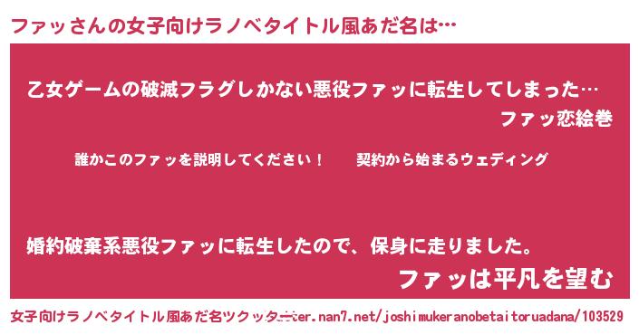 | 男性向けラノベタイトル風あだ名 | 『ファッアートオンライン』 |