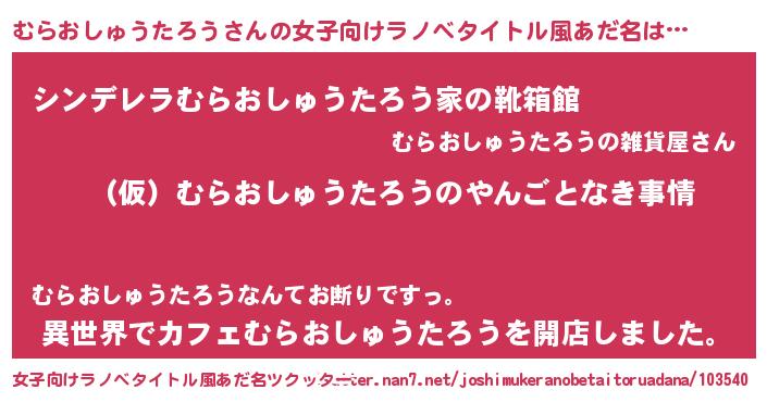 | 肩書あだ名 | 『むらおしゅうたろう御曹司』 |