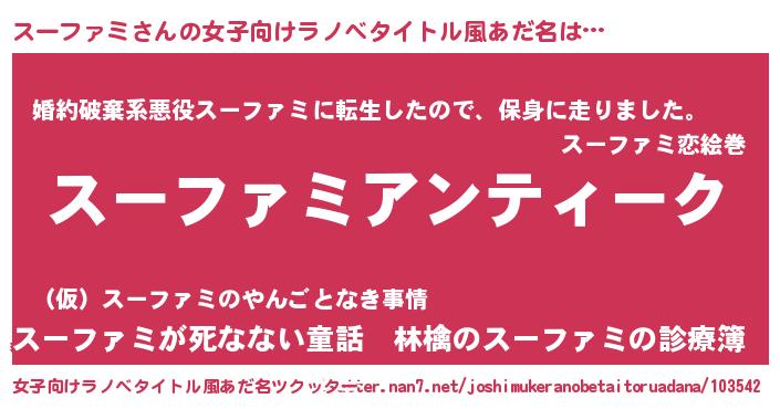 | 男性向けラノベタイトル風あだ名 | 『魔法科高校のスーファミ』 |