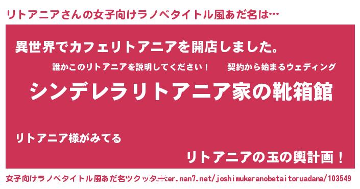 | 男性向けラノベタイトル風あだ名 | 『冴えないリトアニアの育てかた』 |