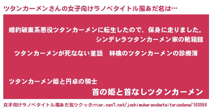 | 男性向けラノベタイトル風あだ名 | 『魔弾の王とツタンカーメン』 |