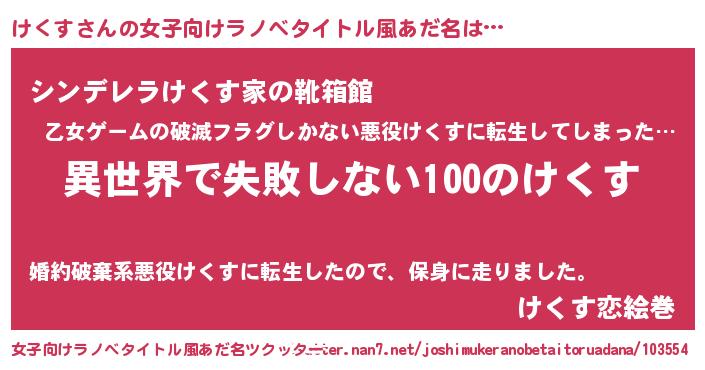 | 男性向けラノベタイトル風あだ名 | 『けくすという概念が存在しない退屈な世界 』 |