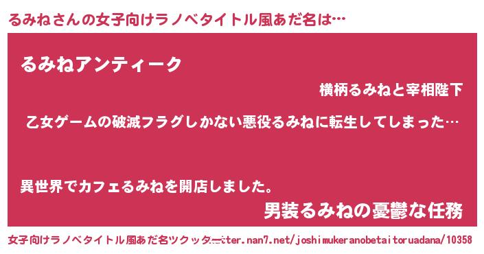 | 男性向けラノベタイトル風あだ名 | 『この素晴らしい世界にるみねを!』 |