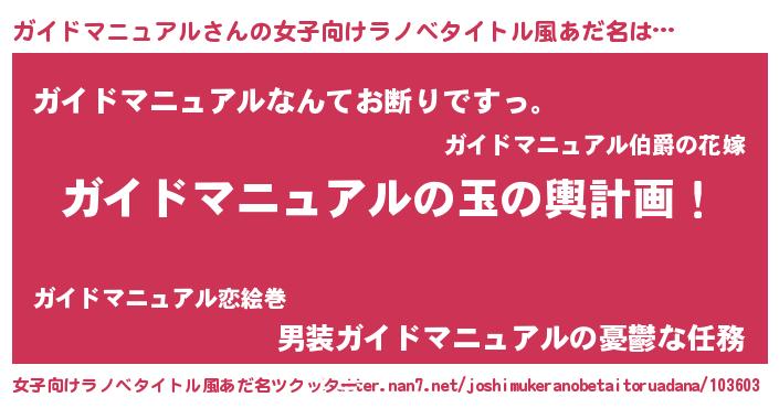 | 胡散臭い通販商品みたいなあだ名 | 『芸能人もオススメするアガリクス…その名も「ガイドマニュアル」』 |