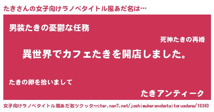 | 市区町村名 | 『たき覇市』『たき田谷区』 |