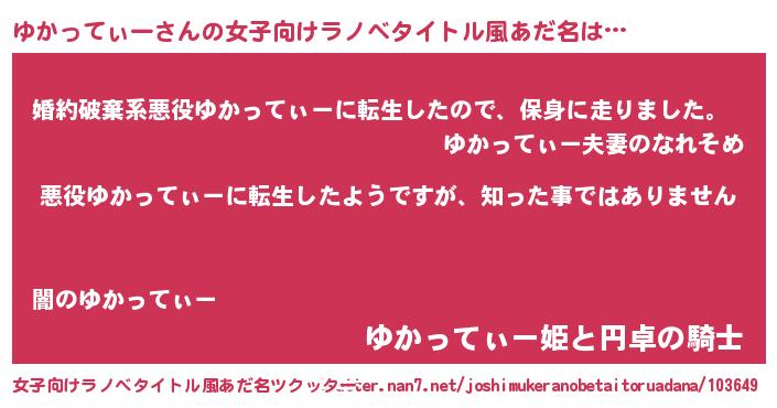| 意味不明あだ名 | 『住所不定無職ゆかってぃー(86歳)』 |