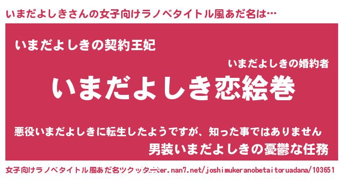 | 可愛いあだ名 | 『いまちゅっちゅ』『いまだよしきママ』 |
