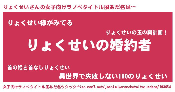 | ファンタジー風あだ名 | 『エターナルリョクセイー』『リョフェル』 |