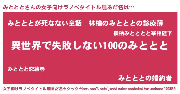 | 男性向けラノベタイトル風あだ名 | 『みとととという概念が存在しない退屈な世界 』 |