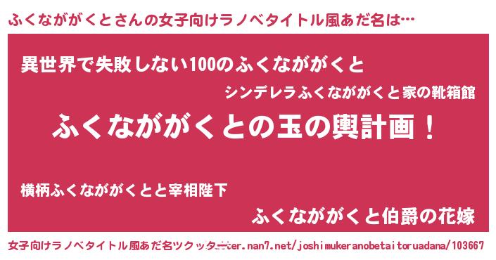 | 男性向けラノベタイトル風あだ名 | 『転生したらふくなががくとだった件』 |