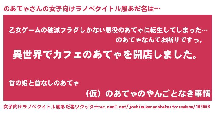 | 男性向けラノベタイトル風あだ名 | 『誰もが恐れるあののあてゃが、ぼくの専属メイドになるようです。』 |