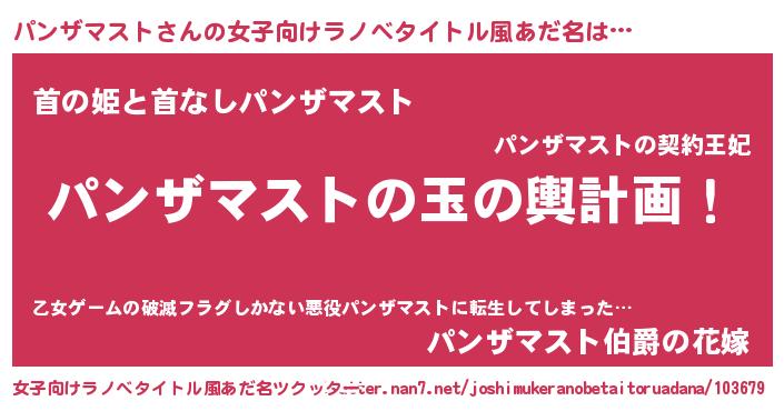 | 胡散臭い通販商品みたいなあだ名 | 『運命の人と巡り会える高級そうな絵画…その名も「パンザマスト」』 |