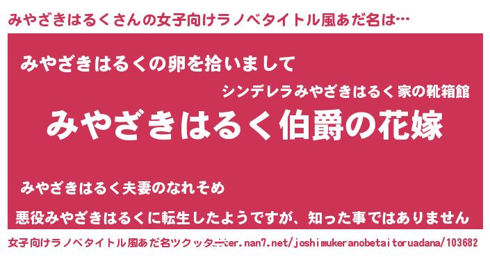 | ファンタジー風あだ名 | 『エターナルミヤザキハルクー』 |