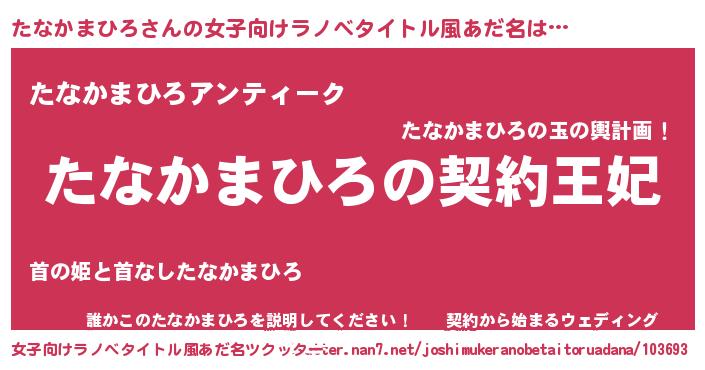 | 男性向けラノベタイトル風あだ名 | 『たなかまひろという概念が存在しない退屈な世界 』 |