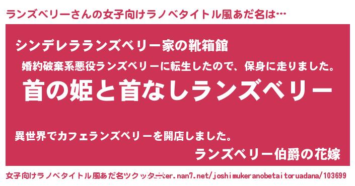 | 男性向けラノベタイトル風あだ名 | 『はたらくランズベリーさま!』 |