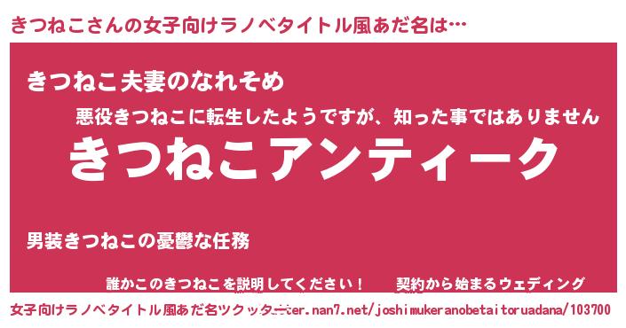 | 胡散臭い通販商品みたいなあだ名 | 『テレビで話題のアガリクス…その名も「きつねこ」』 |