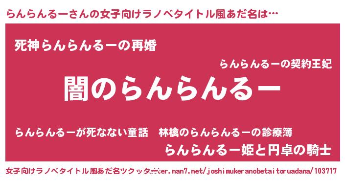 | 意味不明あだ名 | 『自称らんらんるー』 |