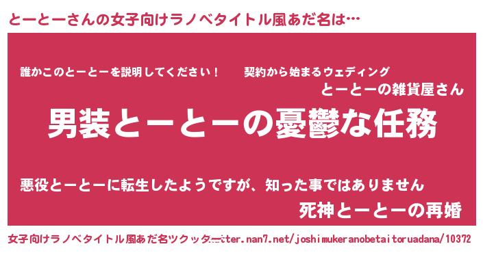 | ヒーロー風カッコイイあだ名 | 『スーパートートー』『仮面トーダー』 |