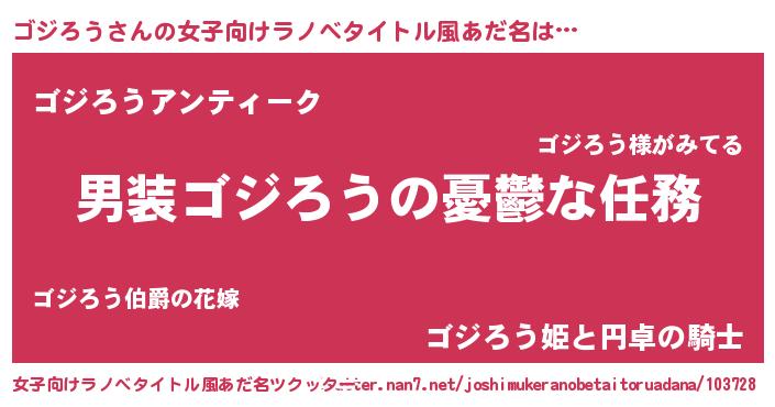 | 男性向けラノベタイトル風あだ名 | 『うちのゴジろうが世界を掌握している!』 |