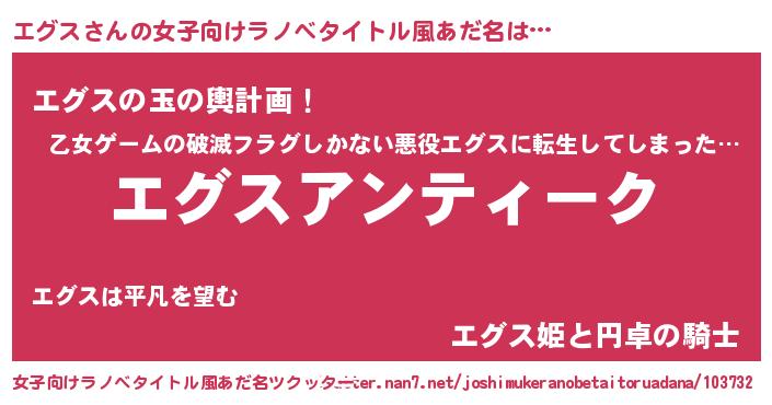 | 男性向けラノベタイトル風あだ名 | 『魔法科高校のエグス』『エグスの憂鬱』 |
