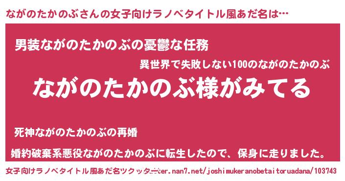 | 意味不明あだ名 | 『とにかく怪しいながのたかのぶ』 |