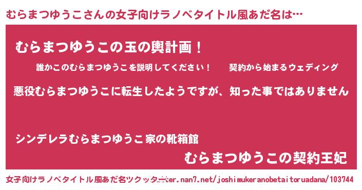 | 男性向けラノベタイトル風あだ名 | 『この素晴らしい世界にむらまつゆうこを!』 |