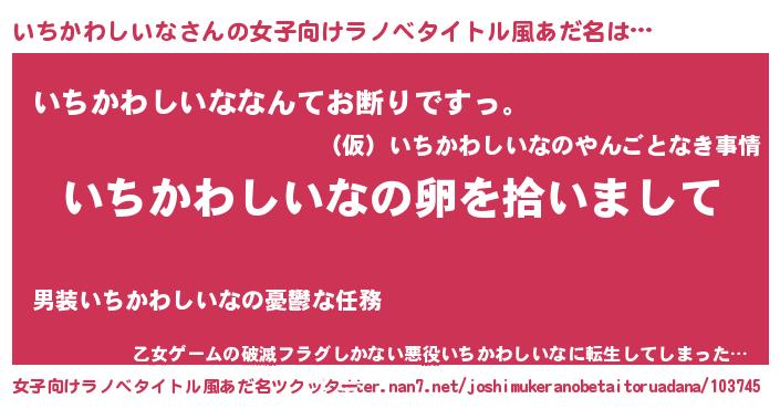 | 男性向けラノベタイトル風あだ名 | 『いちかわしいなの嫁は女の子じゃないと思った?』 |