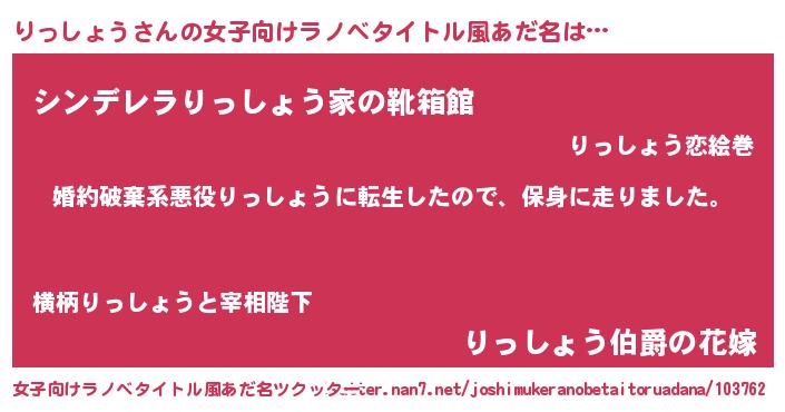 | 男性向けラノベタイトル風あだ名 | 『リッショウスレイヤー』 |