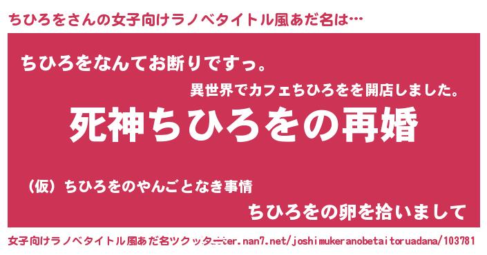 | ヘコむあだ名 | 『ちひ太郎』『ちひろを(遠い目)』 |