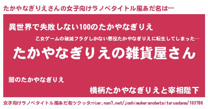 | 男性向けラノベタイトル風あだ名 | 『やはりたかやなぎりえの青春ラブコメはまちがっている 』 |