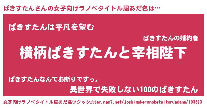 | 胡散臭い通販商品みたいなあだ名 | 『伝統あるサプリメント…その名も「ぱきすたん」』 |