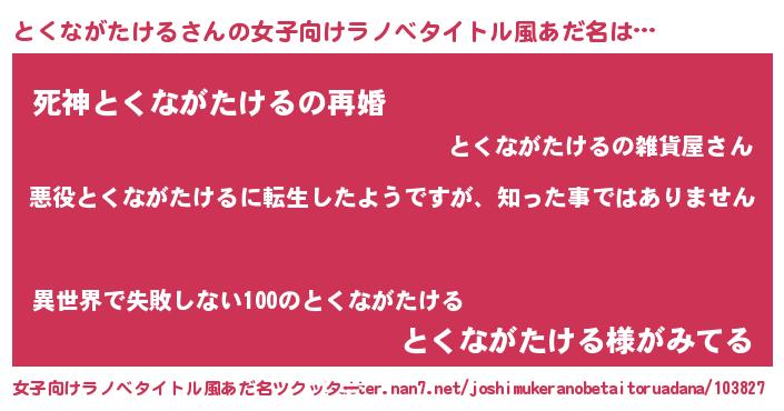 | 胡散臭い通販商品みたいなあだ名 | 『あなたにだけ特別に提供する世界で10本だけ現存している希少なブランデー…その名も「とくながたける」』 |