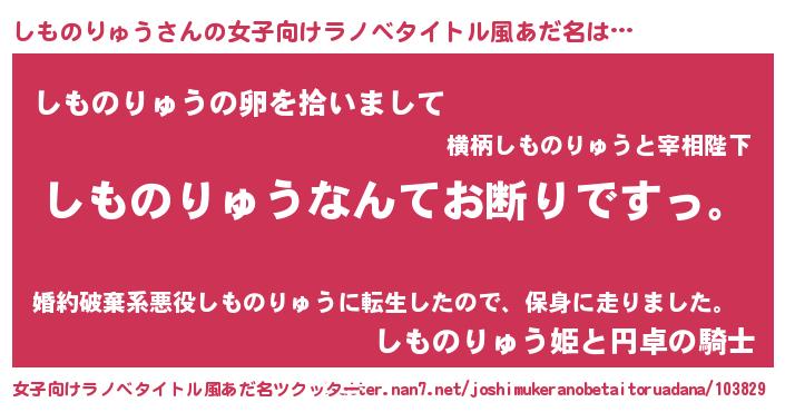 | 意味不明あだ名 | 『自称しものりゅう』 |