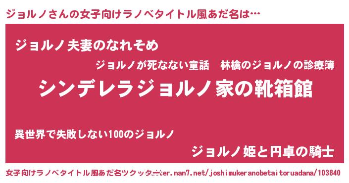 | 男性向けラノベタイトル風あだ名 | 『緋弾のジョルノ』『魔弾の王とジョルノ』 |