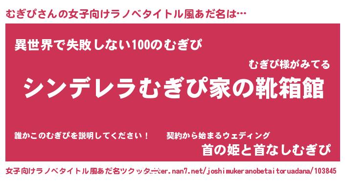 | 胡散臭い通販商品みたいなあだ名 | 『来世でも幸せになれる水素水…その名も「むぎぴ」』 |