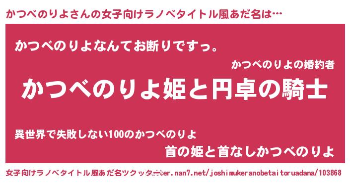 | 男性向けラノベタイトル風あだ名 | 『カツベノリヨアートオンライン』 |