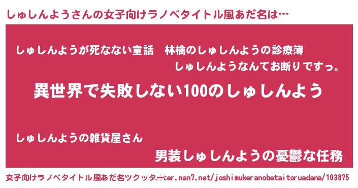 | 男性向けラノベタイトル風あだ名 | 『しゅしんようという概念が存在しない退屈な世界 』 |