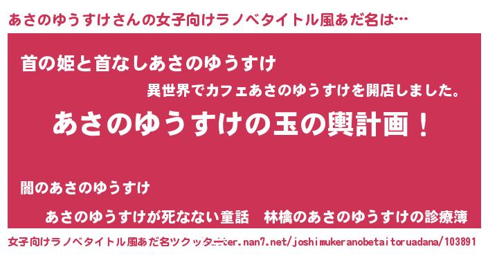 | ヒーロー風カッコイイあだ名 | 『仮面アサダー』『ネオアサノユウスケ』 |