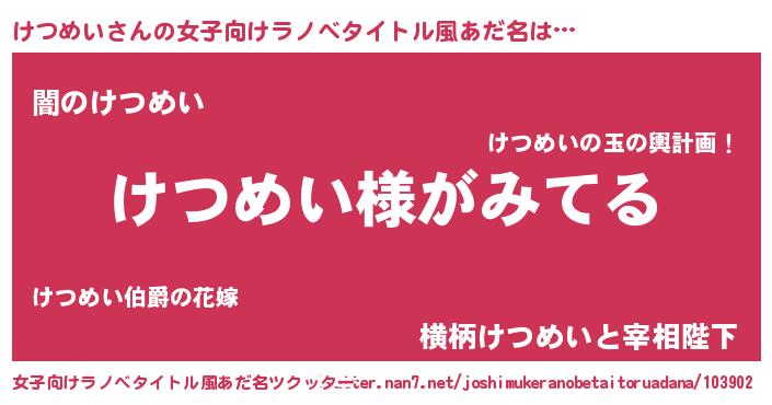 | 男性向けラノベタイトル風あだ名 | 『けつめいの嫁は女の子じゃないと思った?』 |