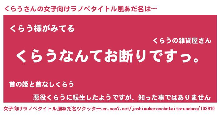 | 男性向けラノベタイトル風あだ名 | 『魔法科高校のくらう』 |