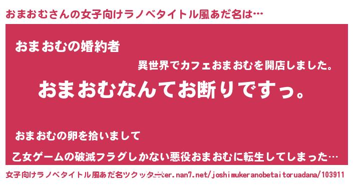 | 男性向けラノベタイトル風あだ名 | 『魔法科高校のおまおむ』 |