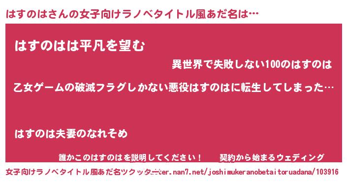 | 意味不明あだ名 | 『住所不定無職はすのは(7歳)』 |