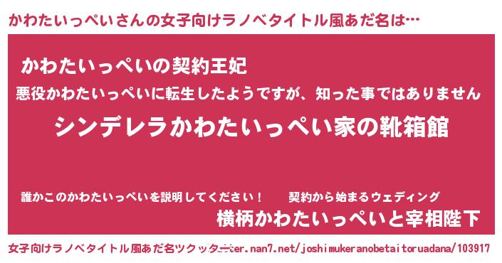 | 男性向けラノベタイトル風あだ名 | 『緋弾のカワタイッペイ』 |