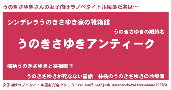 | 意味不明あだ名 | 『自称うのきさゆき』 |